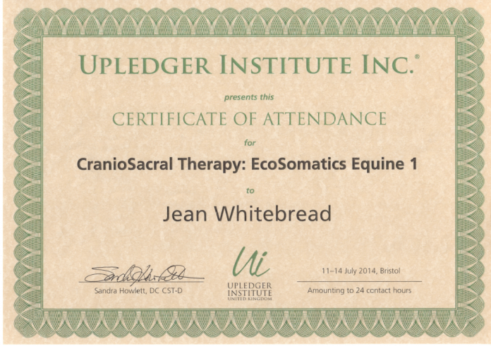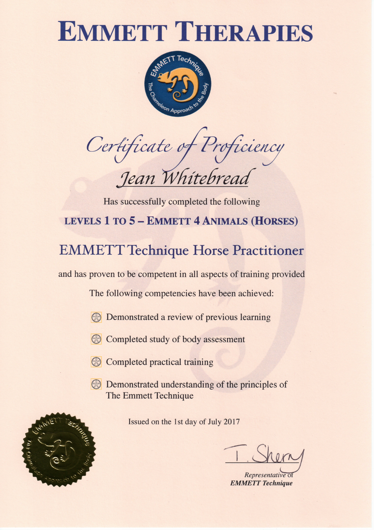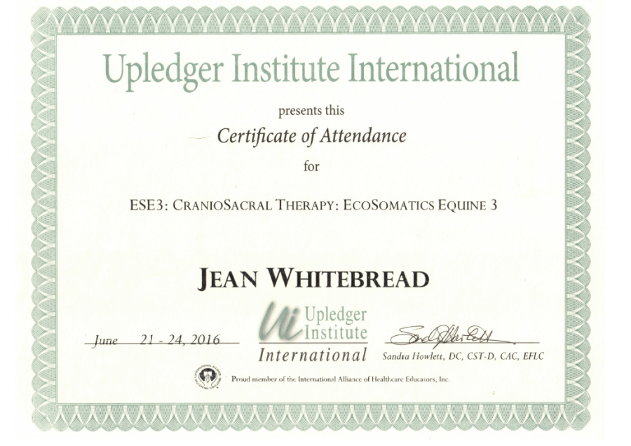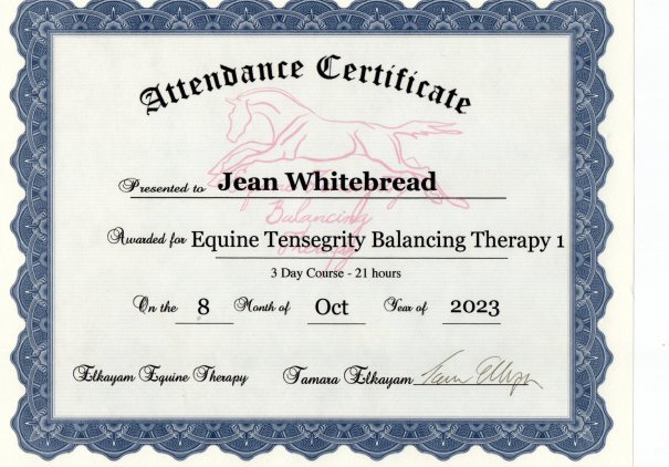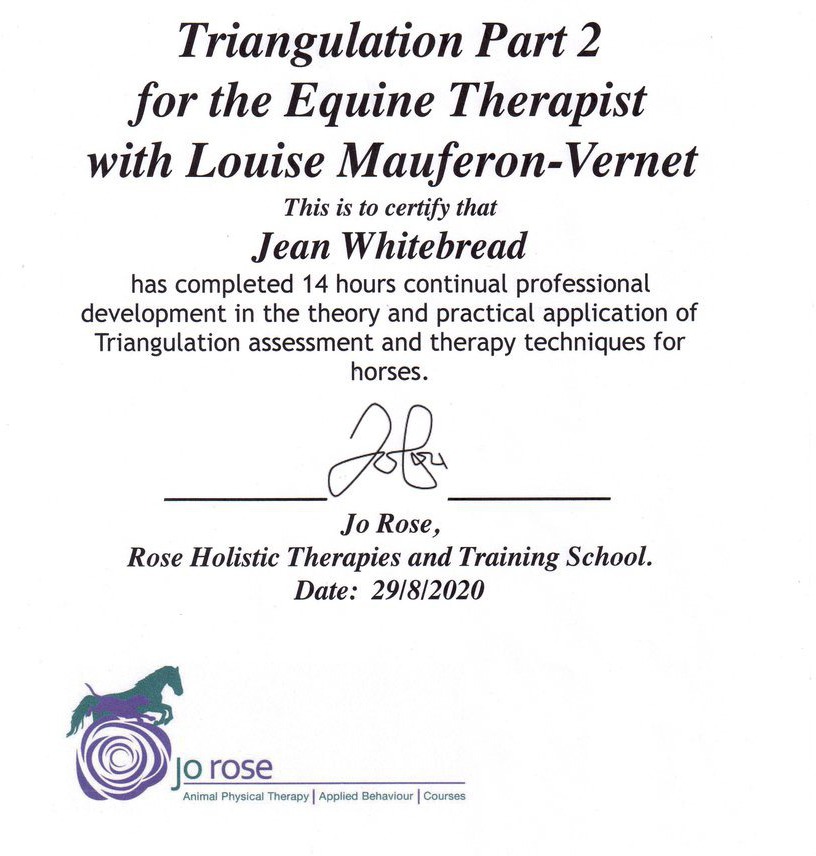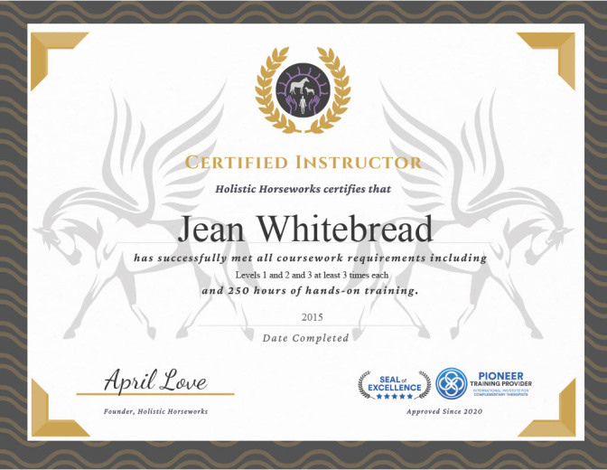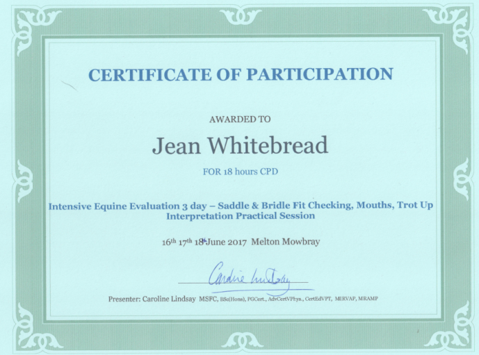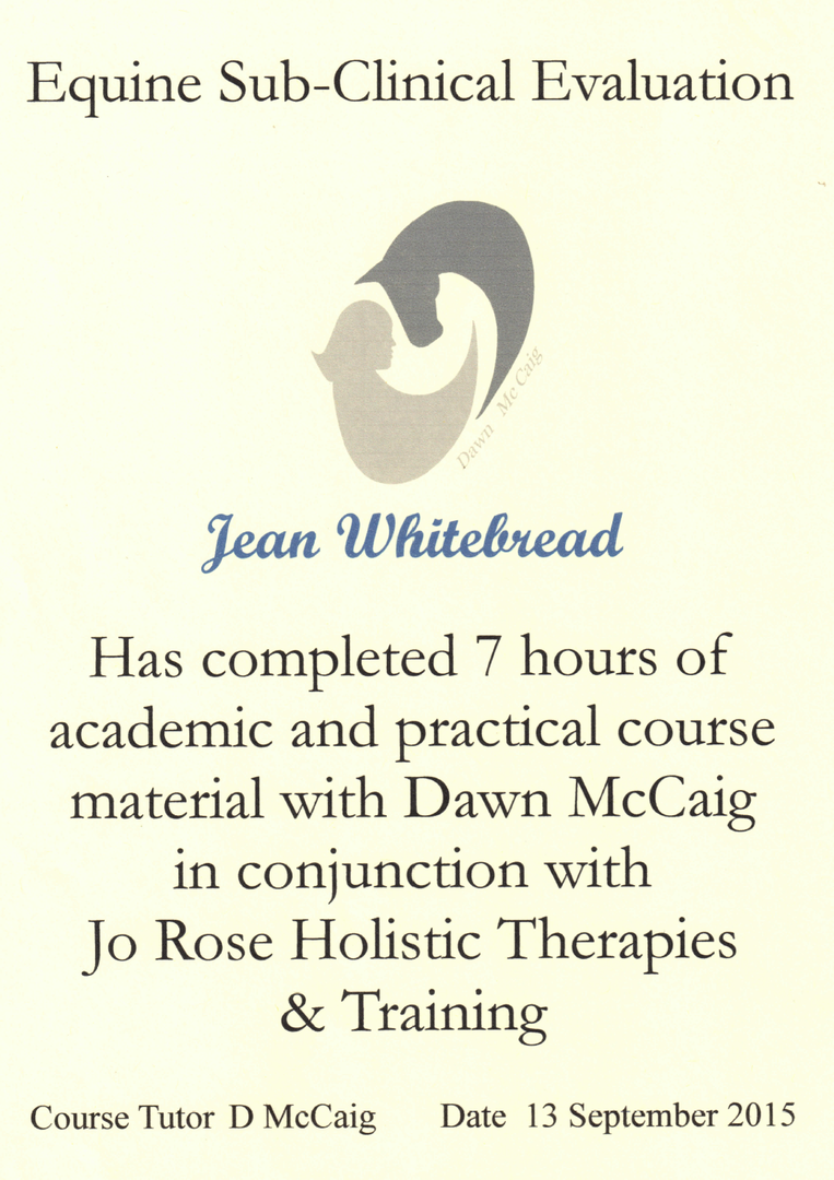 Jean's Equine Therapy training and qualifications -  from most recent