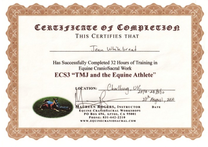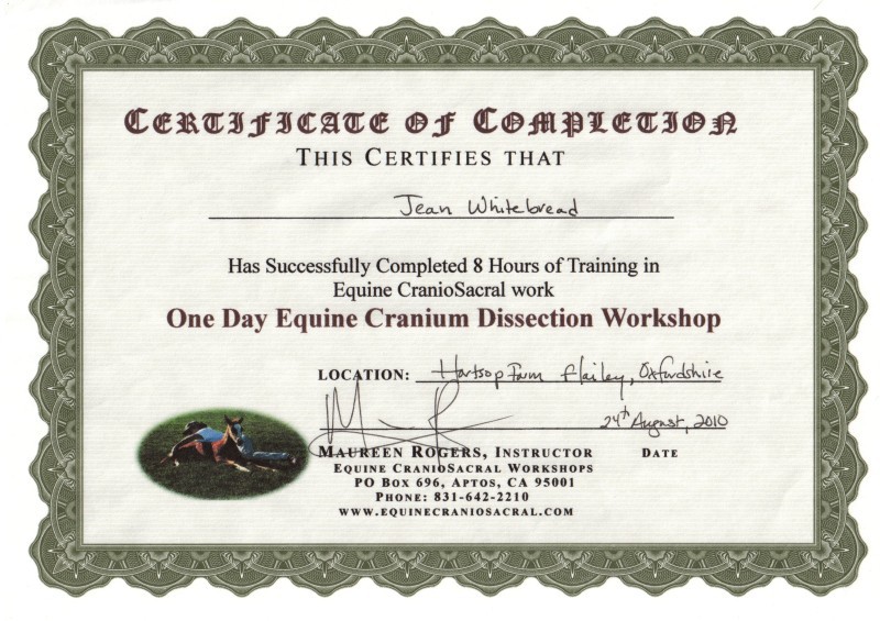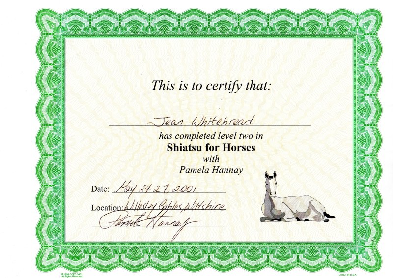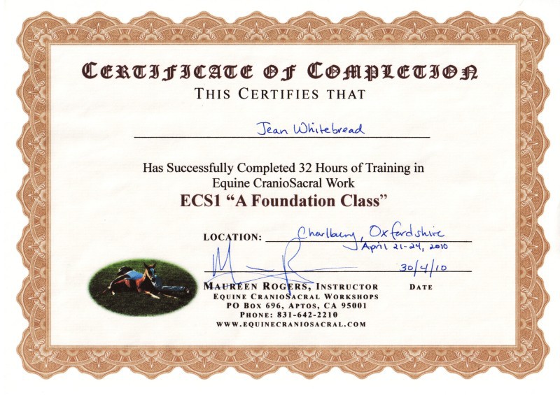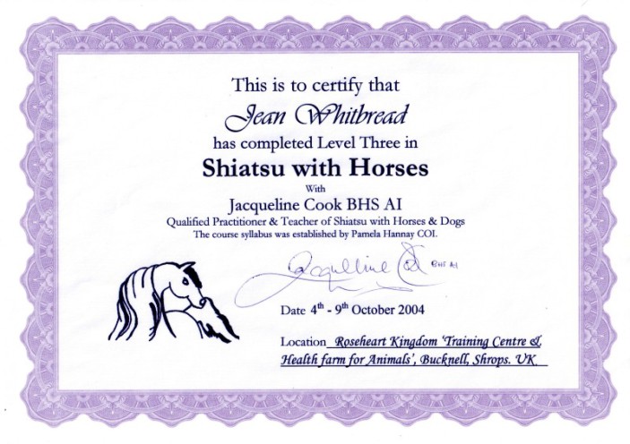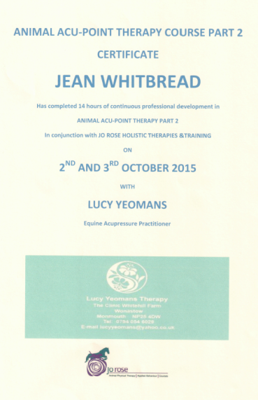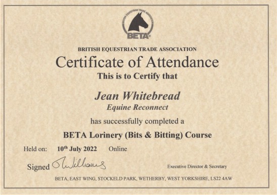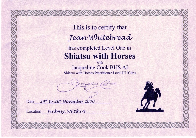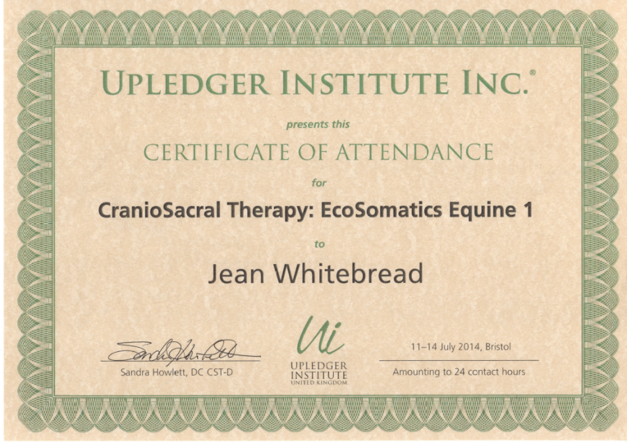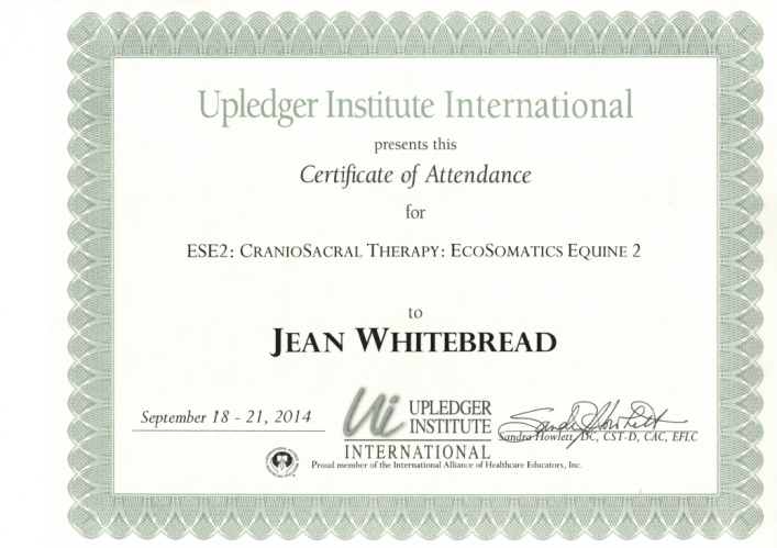 Jean's Equine Therapy training and qualifications -  from most recent