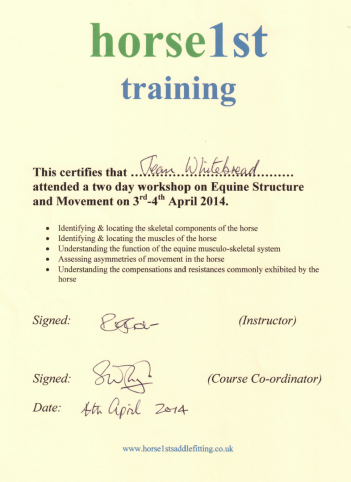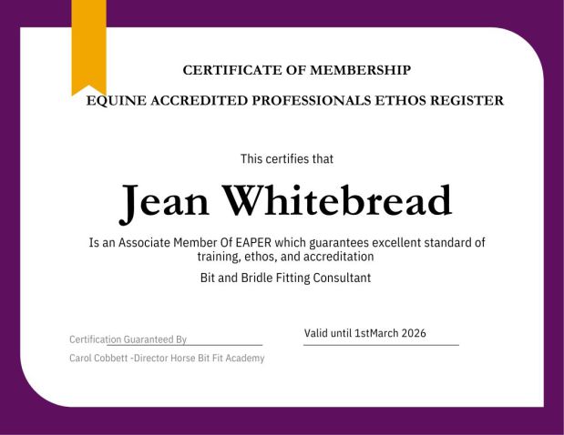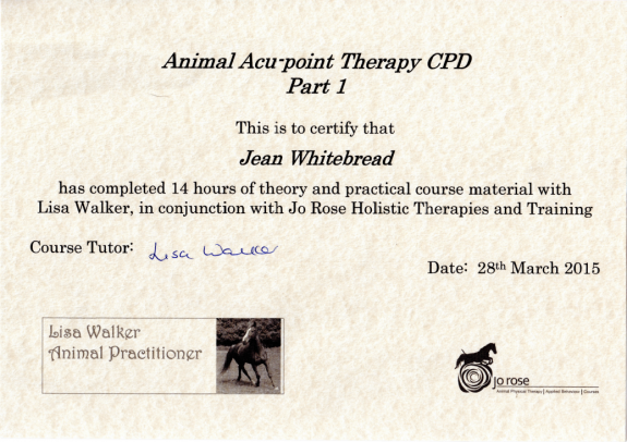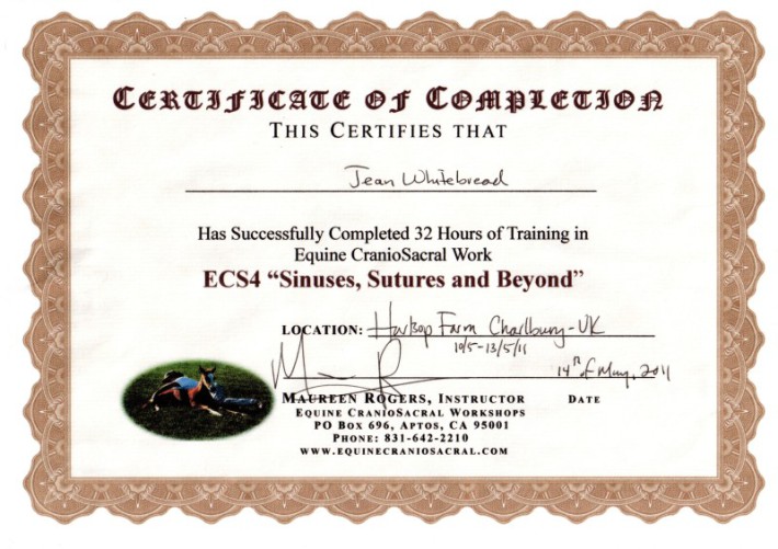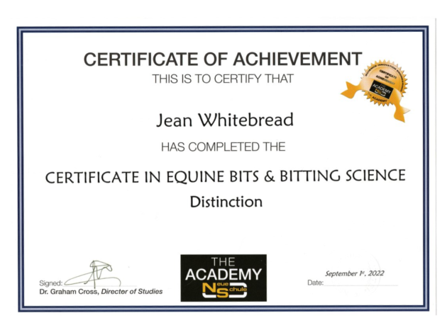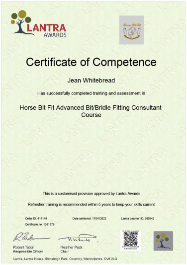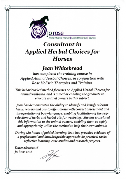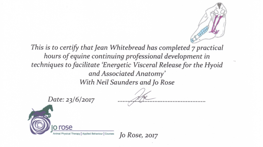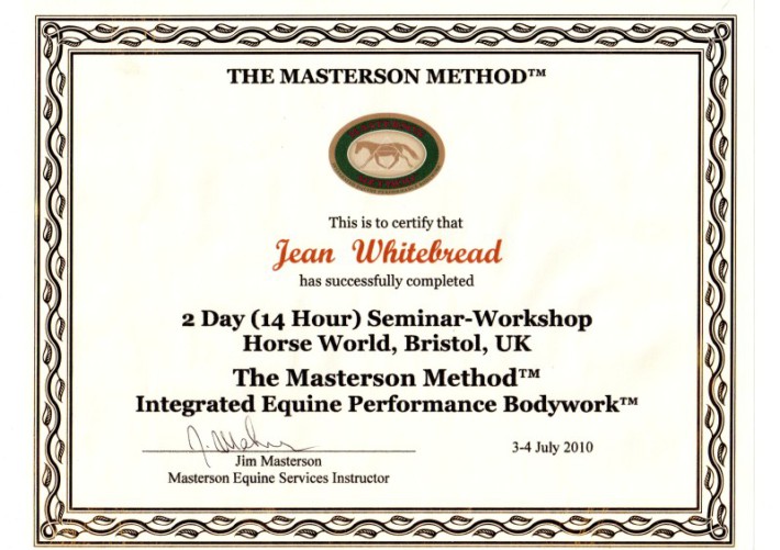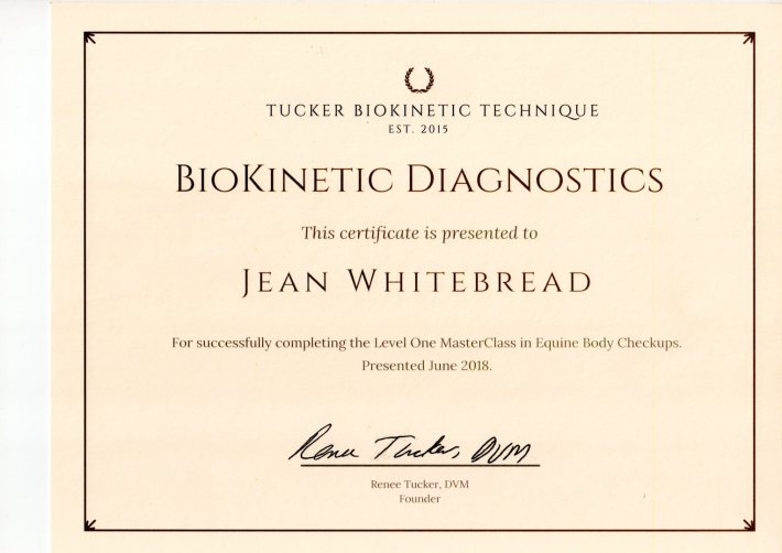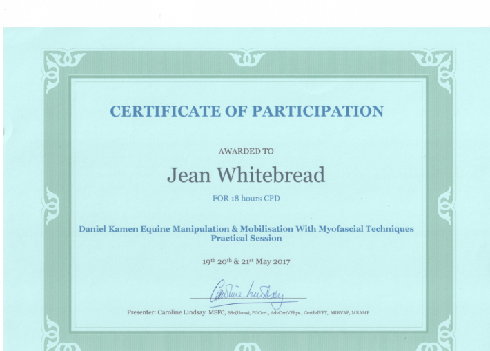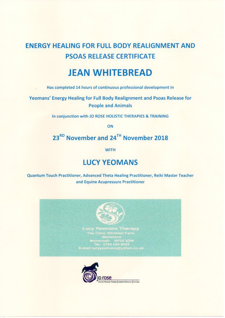 Jean's Equine Therapy training and qualifications -  from most recent
