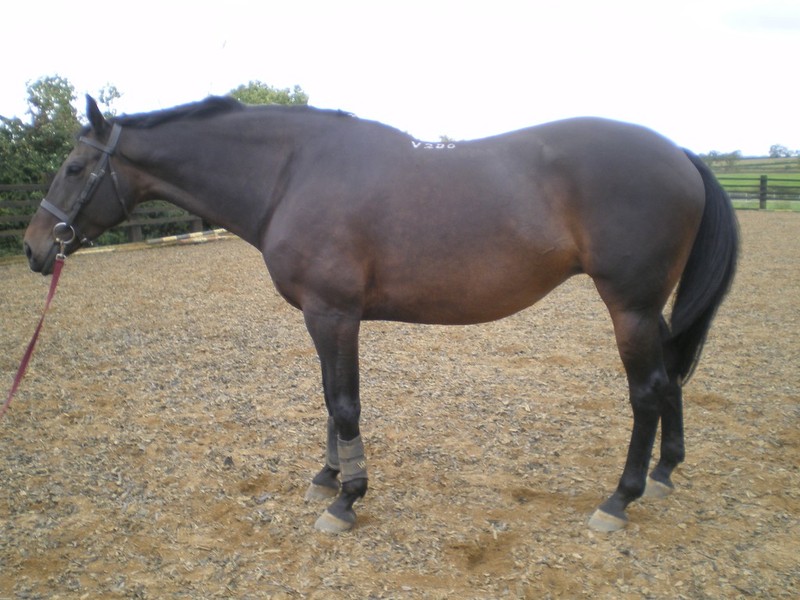 In the after picture there is now an overall roundness to Charlie's outline, with her weight more evenly distributed - ribs fuller, with the forelegs more under the shoulders; and when being worked Charlie is now much more forward going on both reins, and she is also quite happy to stand still when mounted, and then walk on quietly when asked.