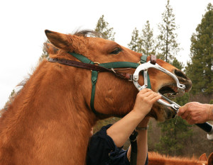 However, the horse's reactions to having the mouth held open in such an unnatural position (especially when under sedation), and also the actual work itself can lead to unhealthy pressures being put onto the bones of the skull and muscles of the TMJ; with enevitable consequences - such as compensatory patterns in mastication (chewing) - leading on to many other issues,